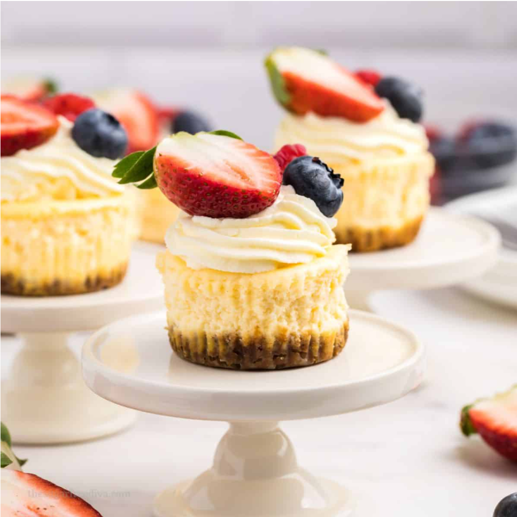 Cheesecake, a classic symbol of sweetness, features the rich and smooth texture of cream cheese, combined with a crisp crust, creating layers of flavor that linger on the palate. Its mini size makes it easy to share and control portion sizes, making sharing and enjoying a truly effortless experience.